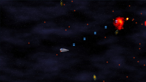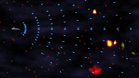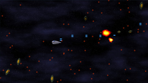 I’ve also made a few enhancements to the graphics. The big one is that I have a new particle system for fire-and-forget particles (i.e. particles that are not affected by game logic past their spawn time). It’s allowed me to add some some nice new explosion and smoke effects (among other things):