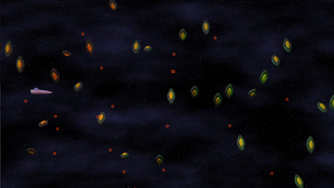 Also, I decided that the Level 1 background (in the first two images in this post) was hideously bland (if such a thing is possible), so I decided to redo it as flying over a red desert canyon (incidentally, the walls of the canyon are generated using the same basic divide-and-offset algorithm as my lightning bolt generator):