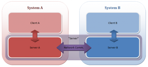 Next, when the client detects a collision between entities, it sends a message to the server (which, you may recall, is running on the same system as the client – each machine gets one) notifying it of a collision. These messages are also synced across the network.